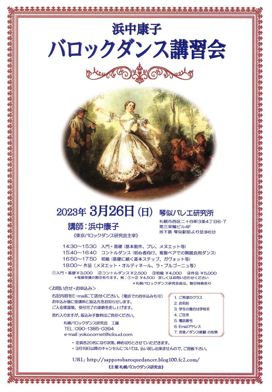 申込み:札幌バロックダンス研究会(工藤)
